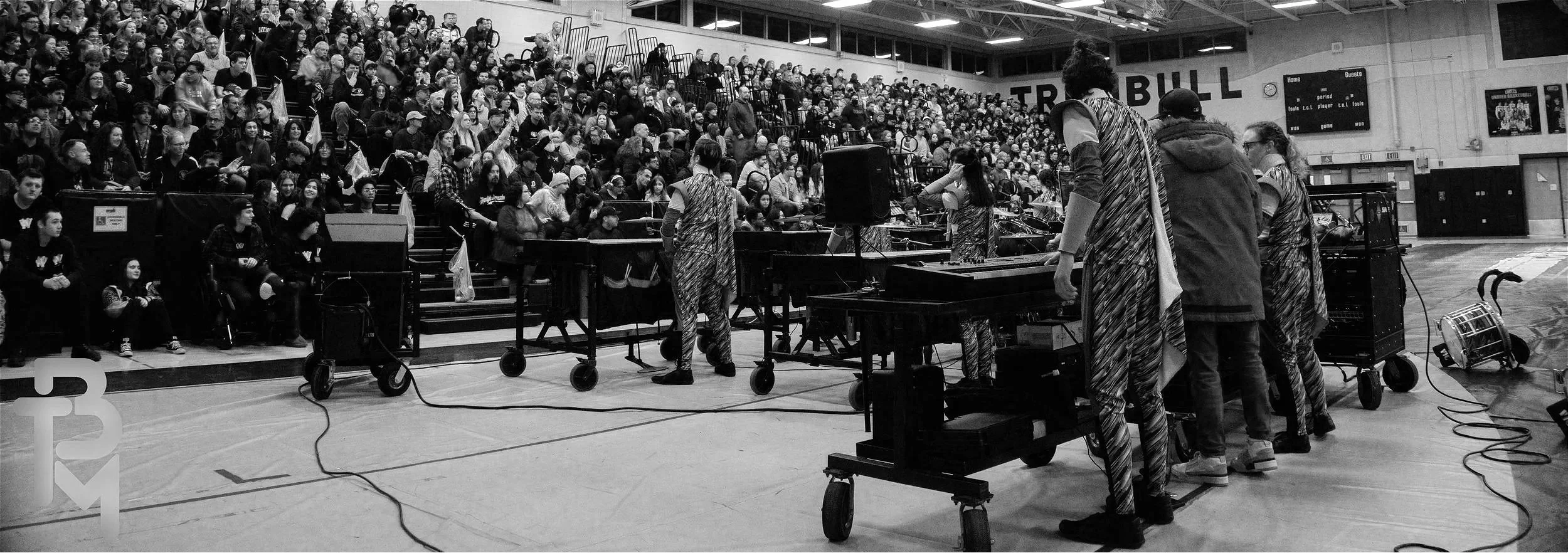 Above a Silk Sewn Sky was originally performed by having the audience sit in a large circle on a concert hall stage in the dark. The audience was surrounded by four sets of sub and full range speakers (played sound design and music), and were circled around three stage monitors (played narration).
